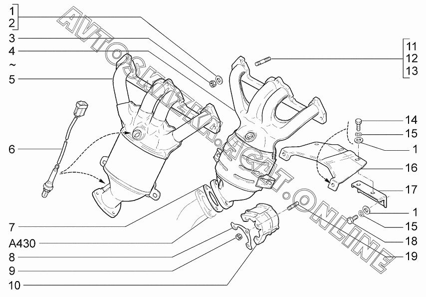 Труба приемная с нейтрализатором ВАЗ 2171 (21713-01, 21713-02, 21713-03 - "Priora" (универсал))