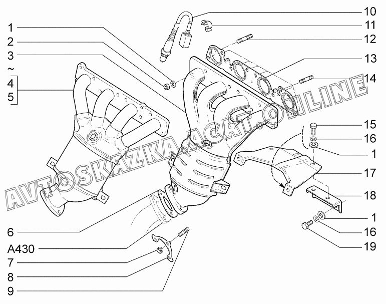 Труба приемная с нейтрализатором (с электронной педалью акселератора) ВАЗ 2171 (21713-01, 21713-02, 21713-03 - "Priora" (универсал))