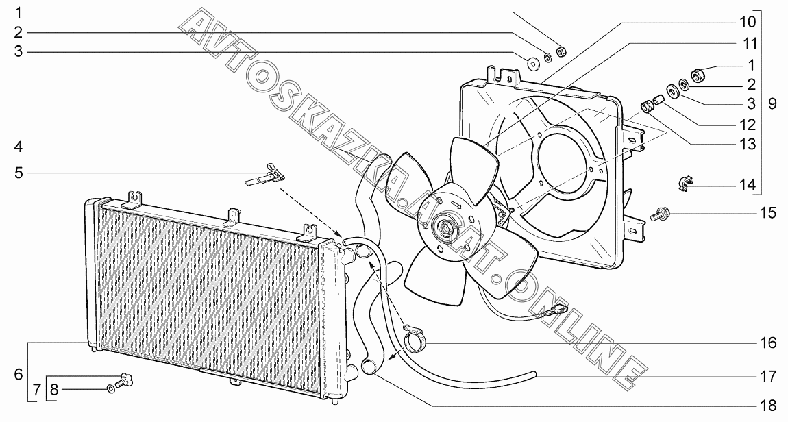 Радиатор (10,11,15,30,110,115,120,125,140,145) ВАЗ 2171 (21713-01, 21713-02, 21713-03 - "Priora" (универсал))