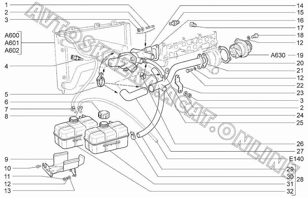 Трубопроводы и бачок расширительный ВАЗ 2171 (21713-01, 21713-02, 21713-03 - "Priora" (универсал))