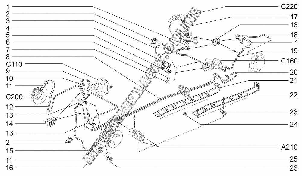 Привод гидротормозов ВАЗ 2171 (21713-01, 21713-02, 21713-03 - "Priora" (универсал))