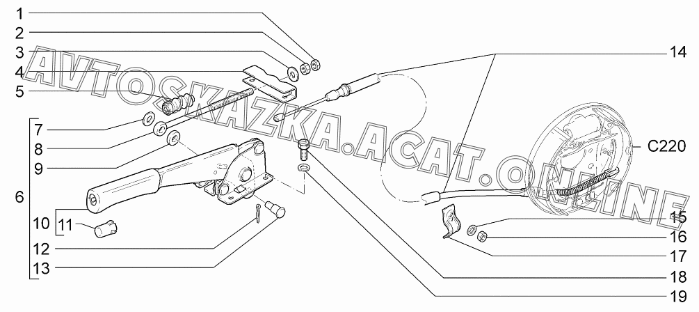 Привод стояночного тормоза ВАЗ 2171 (21713-01, 21713-02, 21713-03 - "Priora" (универсал))