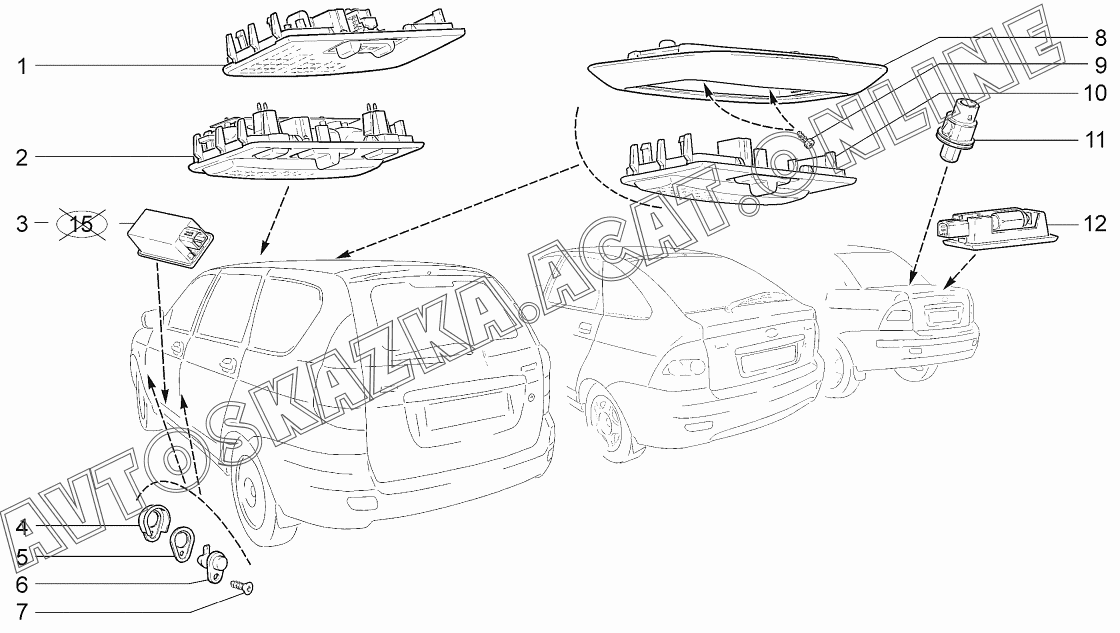 Освещение салона ВАЗ 2171 (21713-01, 21713-02, 21713-03 - "Priora" (универсал))