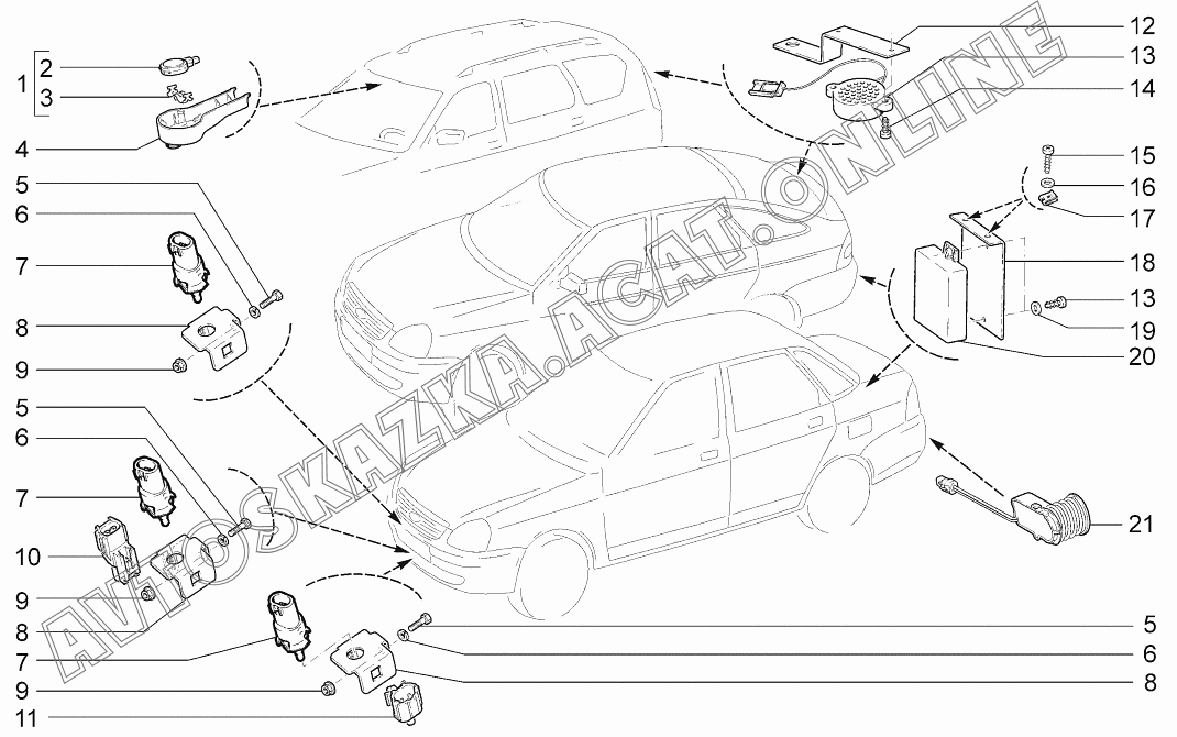 Датчики и система безопасной парковки ВАЗ 2171 (21713-01, 21713-02, 21713-03 - "Priora" (универсал))
