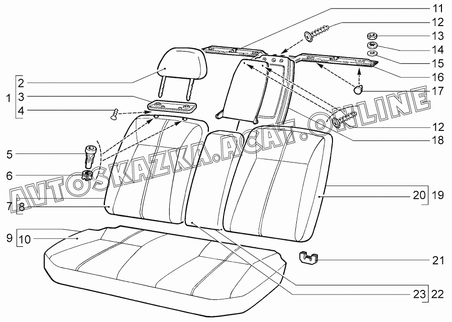 Сиденье заднее ВАЗ 2171 (21713-01, 21713-02, 21713-03 - "Priora" (универсал))