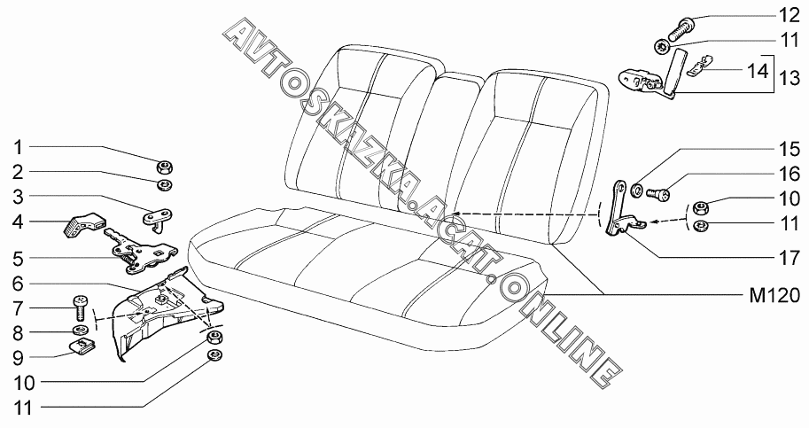 Механизм установки заднего сиденья ВАЗ 2171 (21713-01, 21713-02, 21713-03 - "Priora" (универсал))