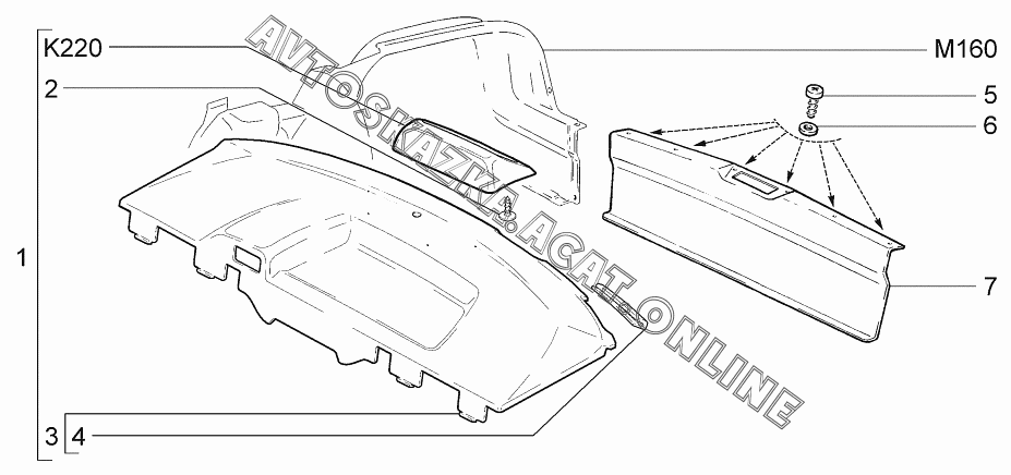 | Название детали: | Полка багажника с прокладкой и буфером в сборе |