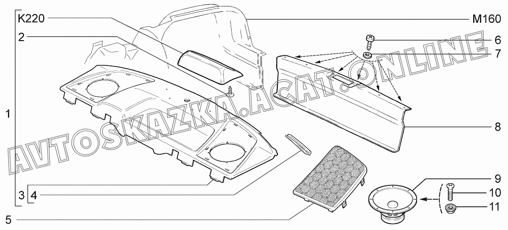 | Название детали: | Полка багажника с прокладкой и буфером в сборе |