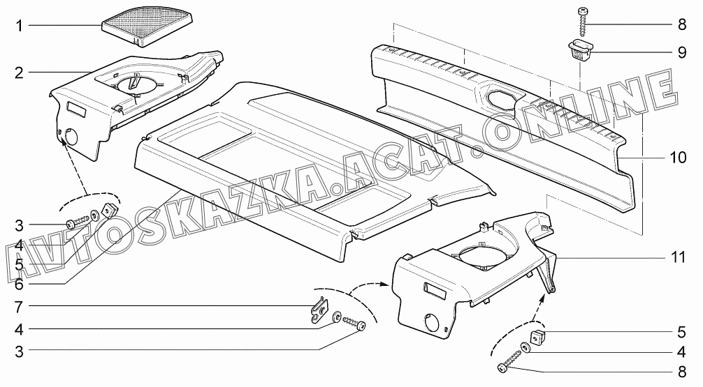 | Название детали: | Опора полки багажника правая |