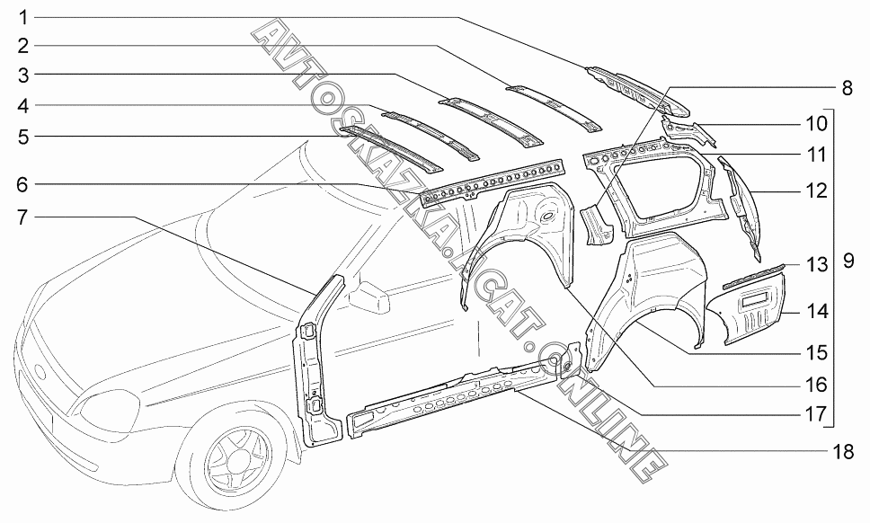 Каркас боковины и задка ВАЗ 2171 (21713-01, 21713-02, 21713-03 - "Priora" (универсал))