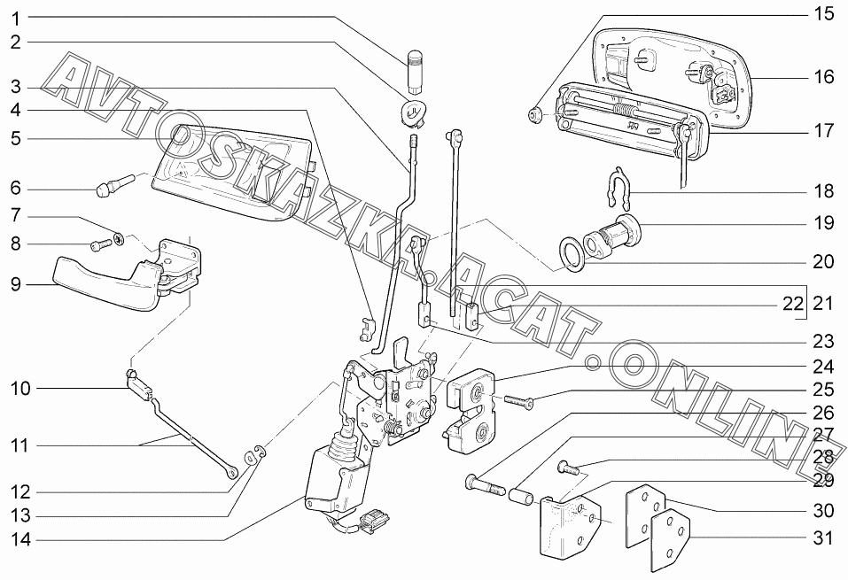 Замки и ручки передних дверей ВАЗ 2171 (21713-01, 21713-02, 21713-03 - "Priora" (универсал))