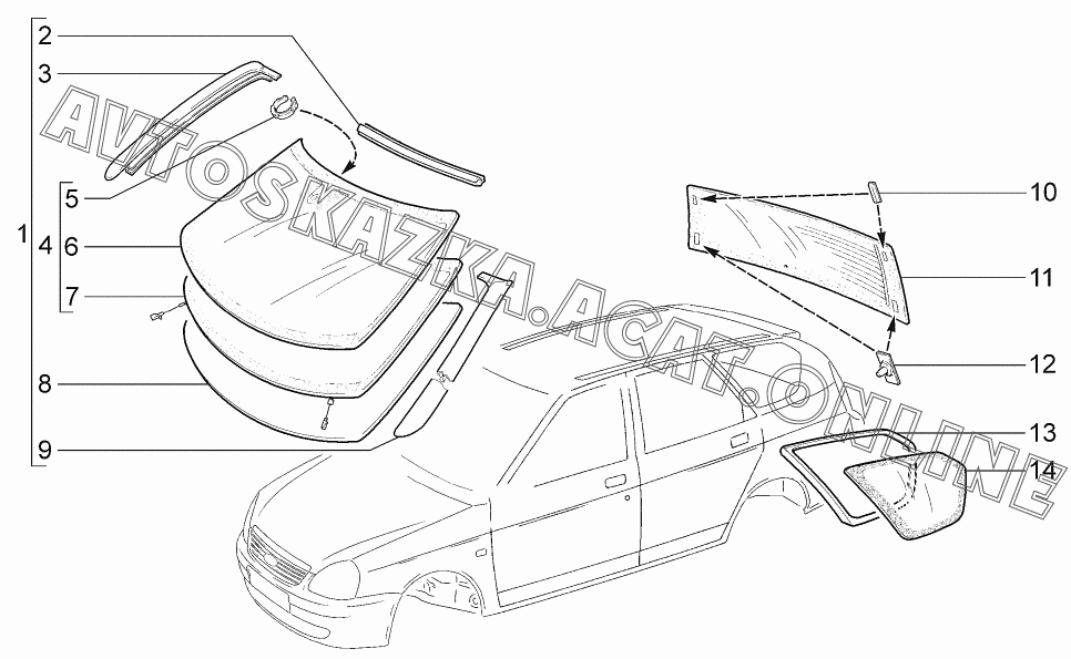 Окна ВАЗ 2171 (21713-01, 21713-02, 21713-03 - "Priora" (универсал))
