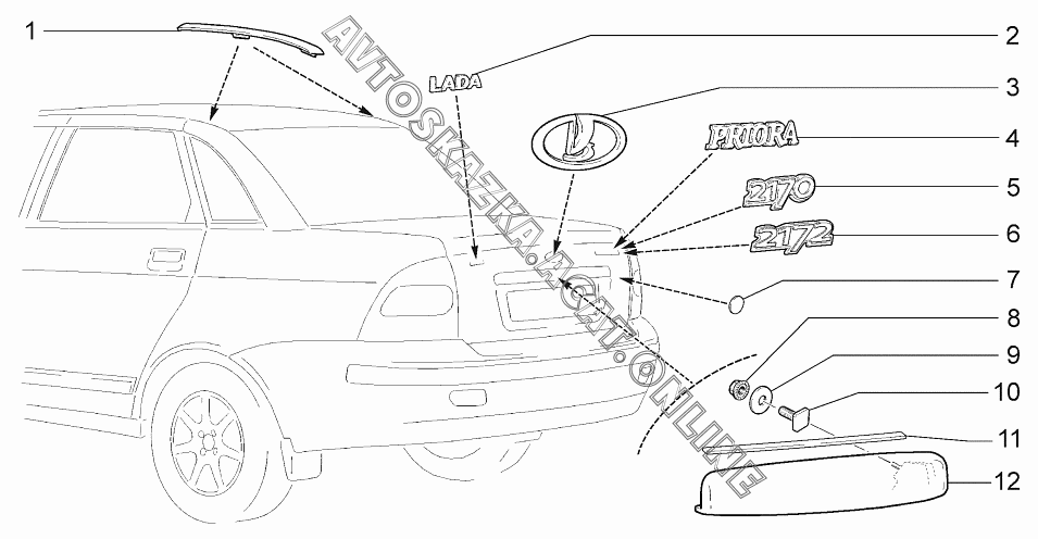 Накладки и надписи декоративные ВАЗ 2171 (21713-01, 21713-02, 21713-03 - "Priora" (универсал))