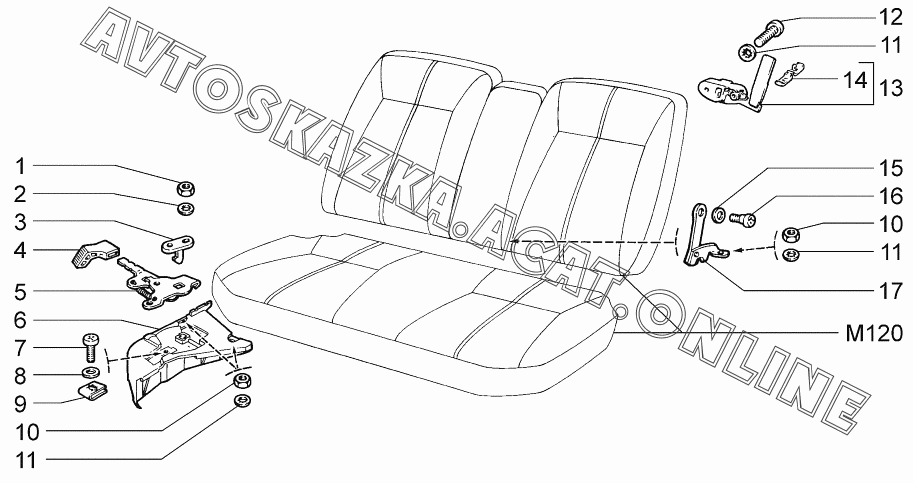 Механизм установки заднего сиденья ВАЗ 2172 (21721-00, 21722-00, 21723-01, 21723-02, 21723-03 - "Priora" (хетчбэк))