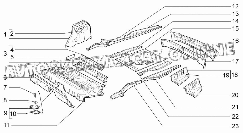 Пол кузова задний ВАЗ 2172 (21721-00, 21722-00, 21723-01, 21723-02, 21723-03 - "Priora" (хетчбэк))