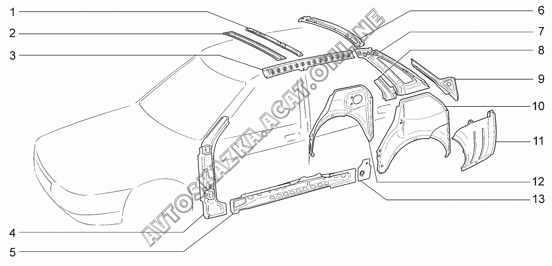 Каркас боковины и задка ВАЗ 2172 (21721-00, 21722-00, 21723-01, 21723-02, 21723-03 - "Priora" (хетчбэк))