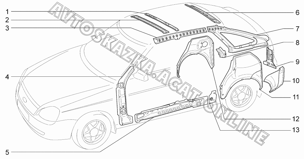 Каркас боковины и задка ВАЗ 2172 (21721-00, 21722-00, 21723-01, 21723-02, 21723-03 - "Priora" (хетчбэк))