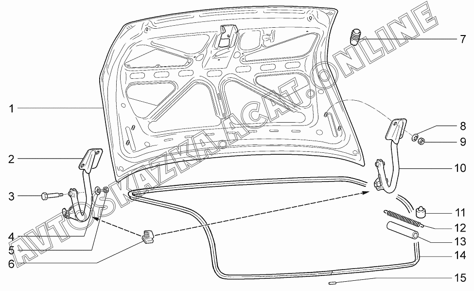 | Название детали: | Звено петли крышки багажника подвижное правое |