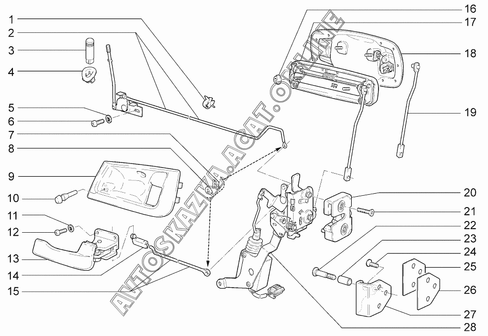 Замки и ручки задних дверей ВАЗ 2172 (21721-00, 21722-00, 21723-01, 21723-02, 21723-03 - "Priora" (хетчбэк))