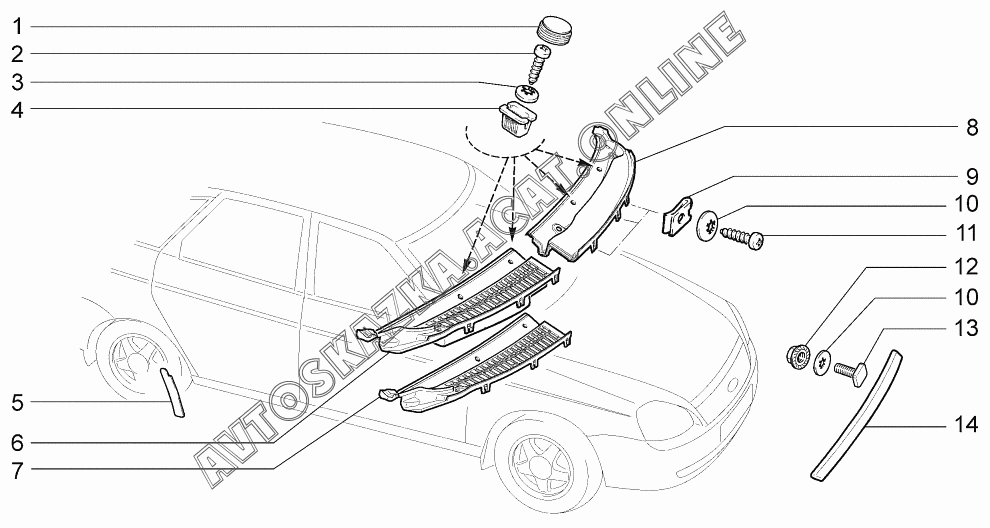 Накладки облицовочные ВАЗ 2172 (21721-00, 21722-00, 21723-01, 21723-02, 21723-03 - "Priora" (хетчбэк))