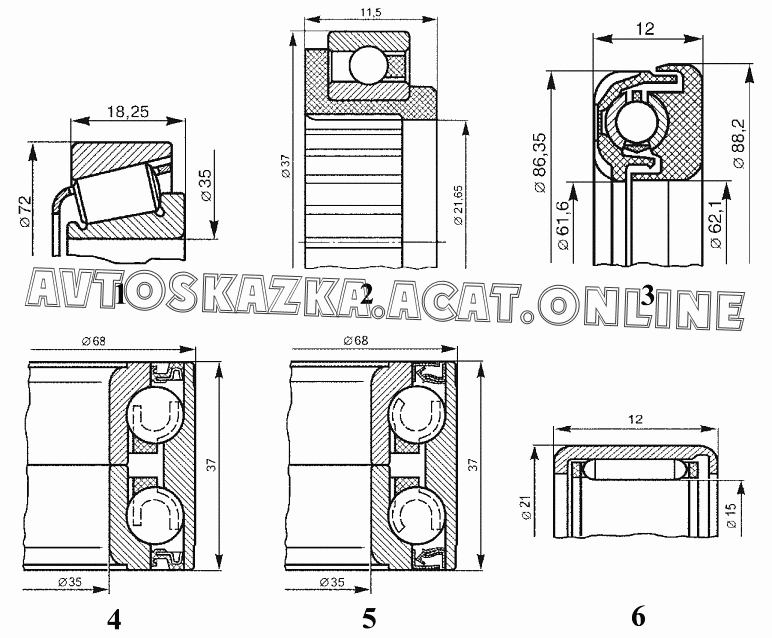 Подшипники ВАЗ 2172 (21721-00, 21722-00, 21723-01, 21723-02, 21723-03 - "Priora" (хетчбэк))