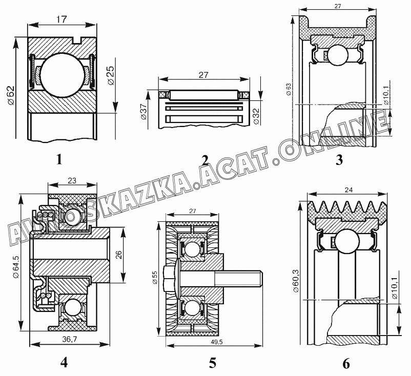 | Название детали: | Подшипник качения (D=63; d=10,1; B=27) |