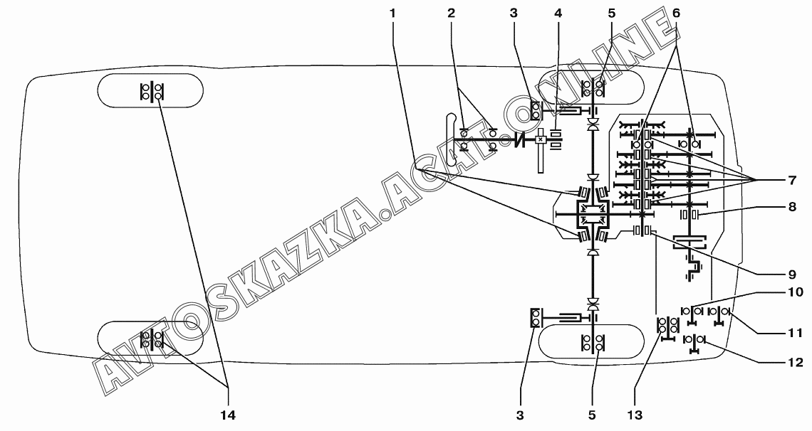 Схема расположения подшипников качения ВАЗ 2172 (21721-00, 21722-00, 21723-01, 21723-02, 21723-03 - "Priora" (хетчбэк))