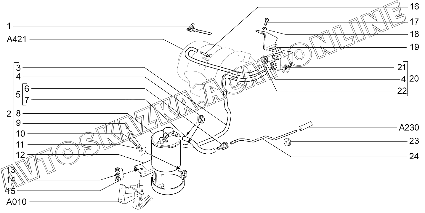 Система улавливания паров бензина (Адсорбер) (Е-газ) ВАЗ 21214 (21214-20, 21214-30, 21214-40, 21214-50)