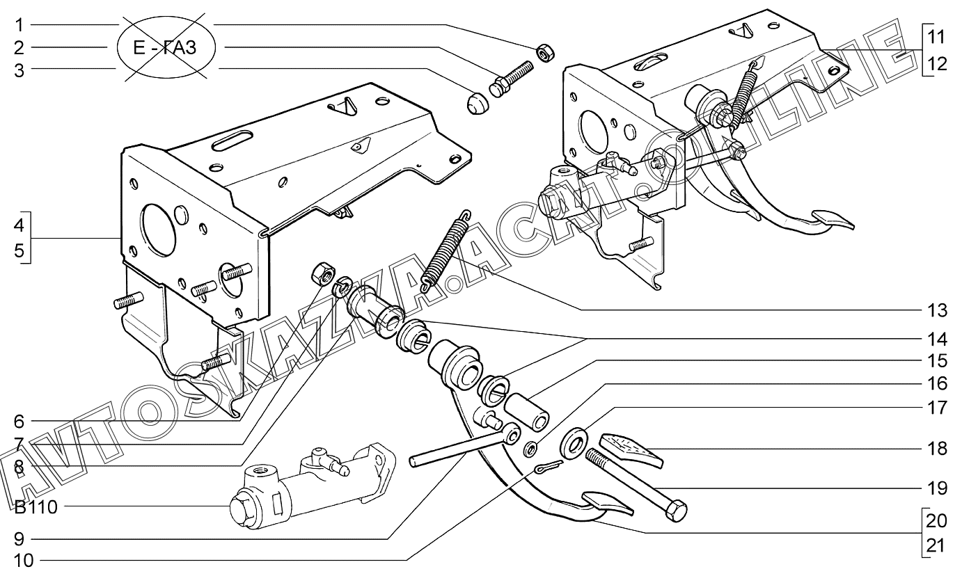 | Название детали: | Педали с кронштейном и главным цилиндром в сборе |