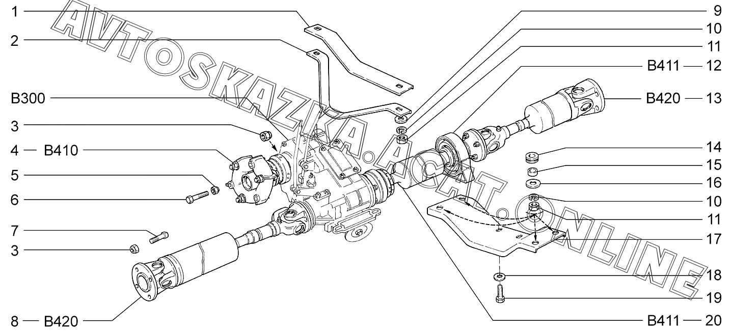 Привод раздаточной коробки и мостов ВАЗ 21214 (21214-20, 21214-30, 21214-40, 21214-50)