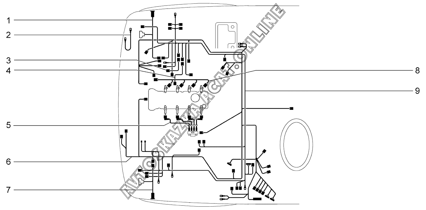 | Название детали: | Жгут проводов форсунок в сборе |