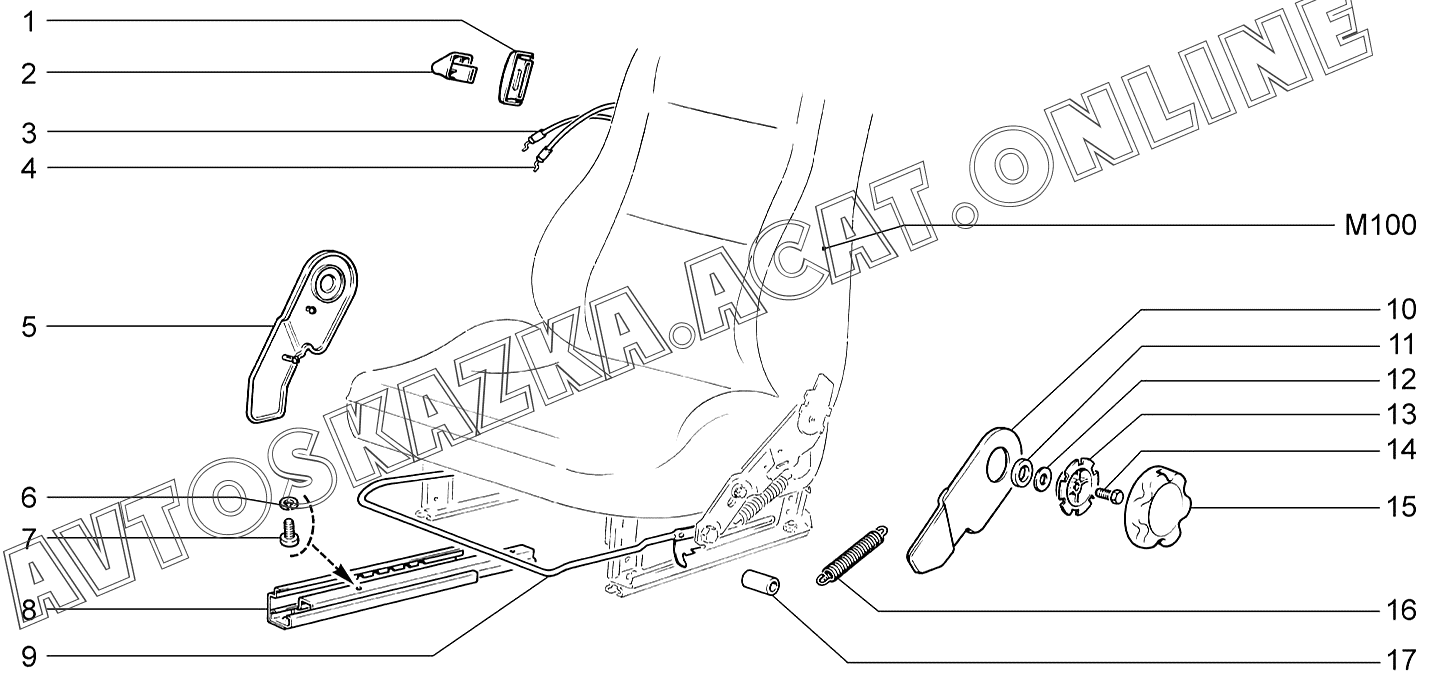 | Название детали: | Салазки переднего сиденья левые |