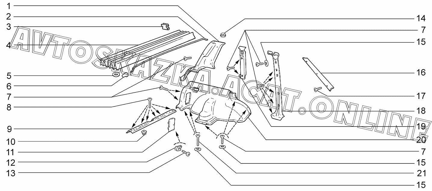 | Название детали: | Втулка крепления дуги обивки крыши |
