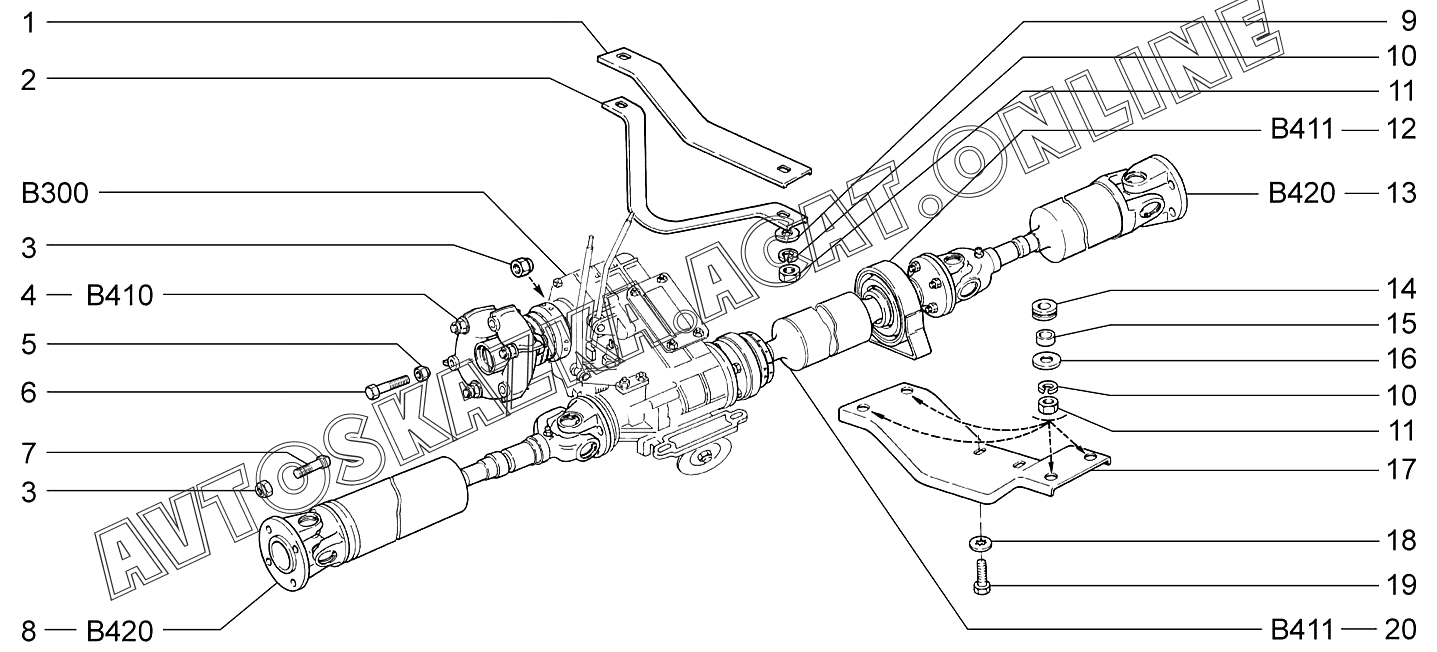 Привод раздаточной коробки и мостов ВАЗ 2131 (2131-30, 2131-40, 2131-41)