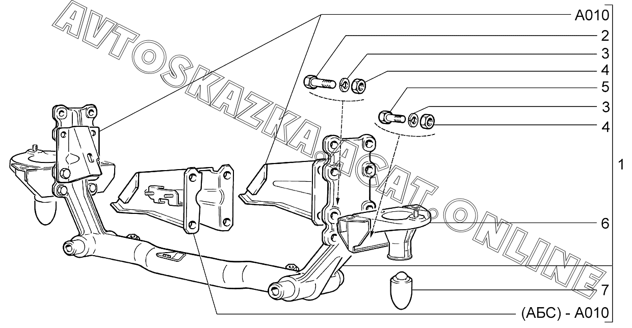 | Название детали: | Поперечина подвески с кронштейнами |