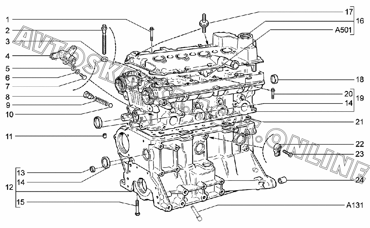 Блок цилиндров и головка блока ВАЗ 2170 (21702-30, 21703-31, 21703-33, 21705-31, 21705-33, 21705-34 "Priora FL" (седан))