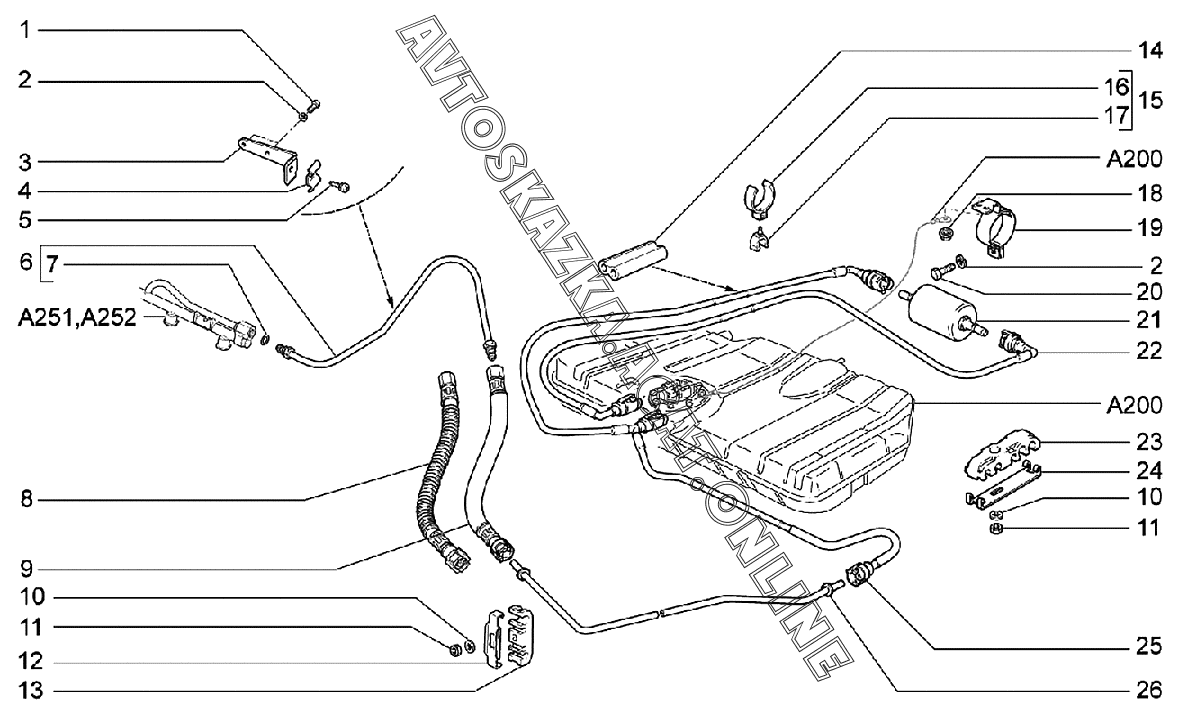Трубопроводы топливные ВАЗ 2170 (21702-30, 21703-31, 21703-33, 21705-31, 21705-33, 21705-34 "Priora FL" (седан))