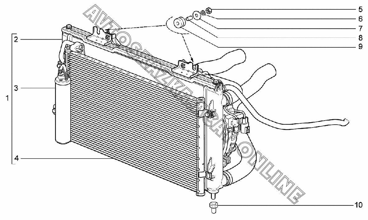 Радиатор в сборе (для автомобилей с климатической установкой, до 09.2014)