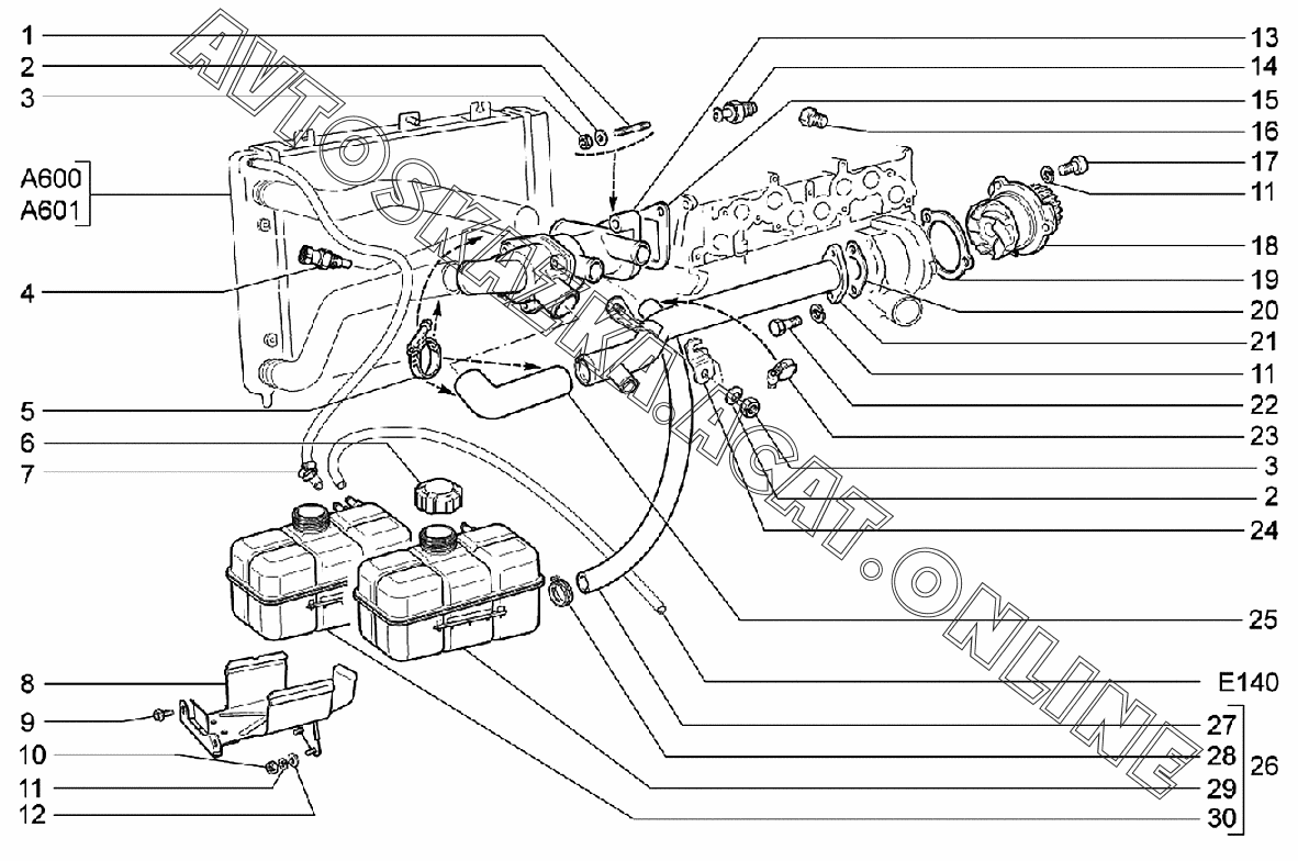 Трубопроводы и бачок расширительный (для автомобилей с КПП 21806, 21816) ВАЗ 2170 (21702-30, 21703-31, 21703-33, 21705-31, 21705-33, 21705-34 "Priora FL" (седан))