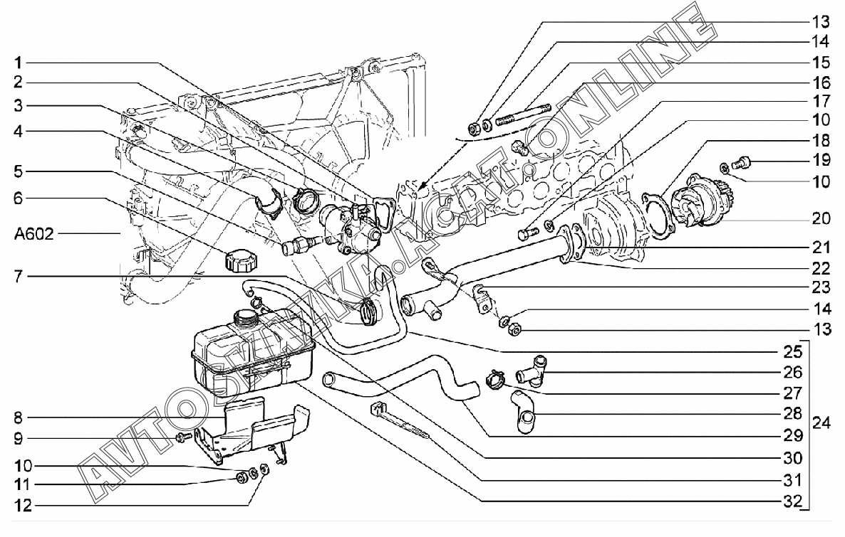 Трубопроводы и бачок расширительный (с 09.2014) ВАЗ 2170 (21702-30, 21703-31, 21703-33, 21705-31, 21705-33, 21705-34 "Priora FL" (седан))