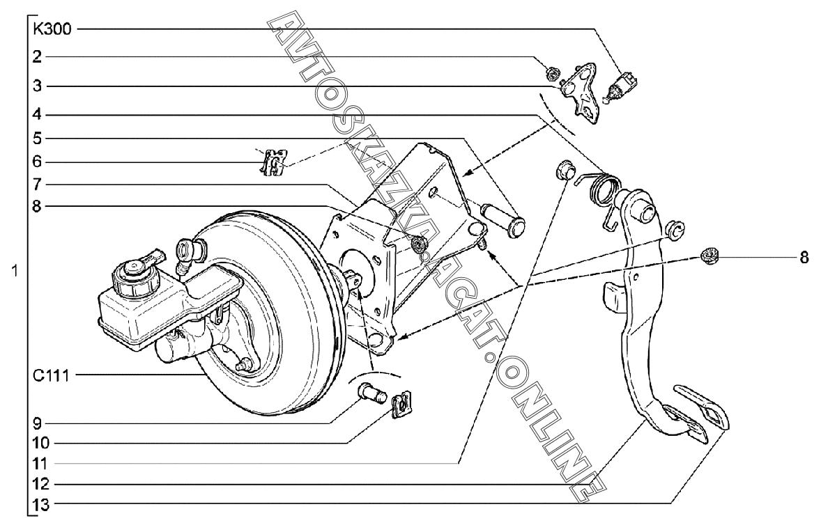 | Название детали: | Педаль тормоза с кронштейном в сборе |