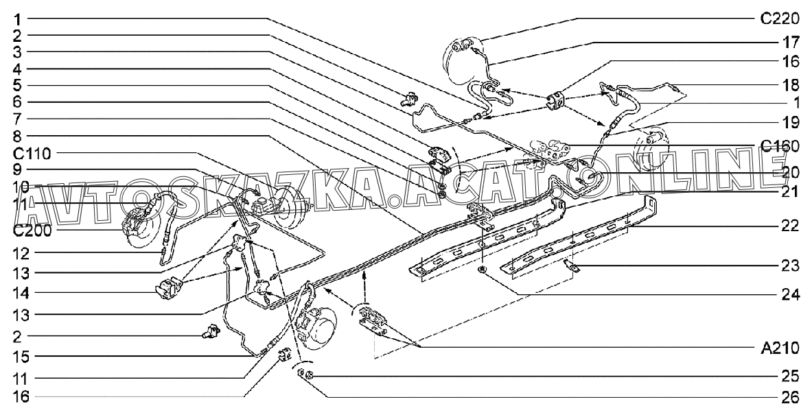 Привод гидротормозов ВАЗ 2170 (21702-30, 21703-31, 21703-33, 21705-31, 21705-33, 21705-34 "Priora FL" (седан))
