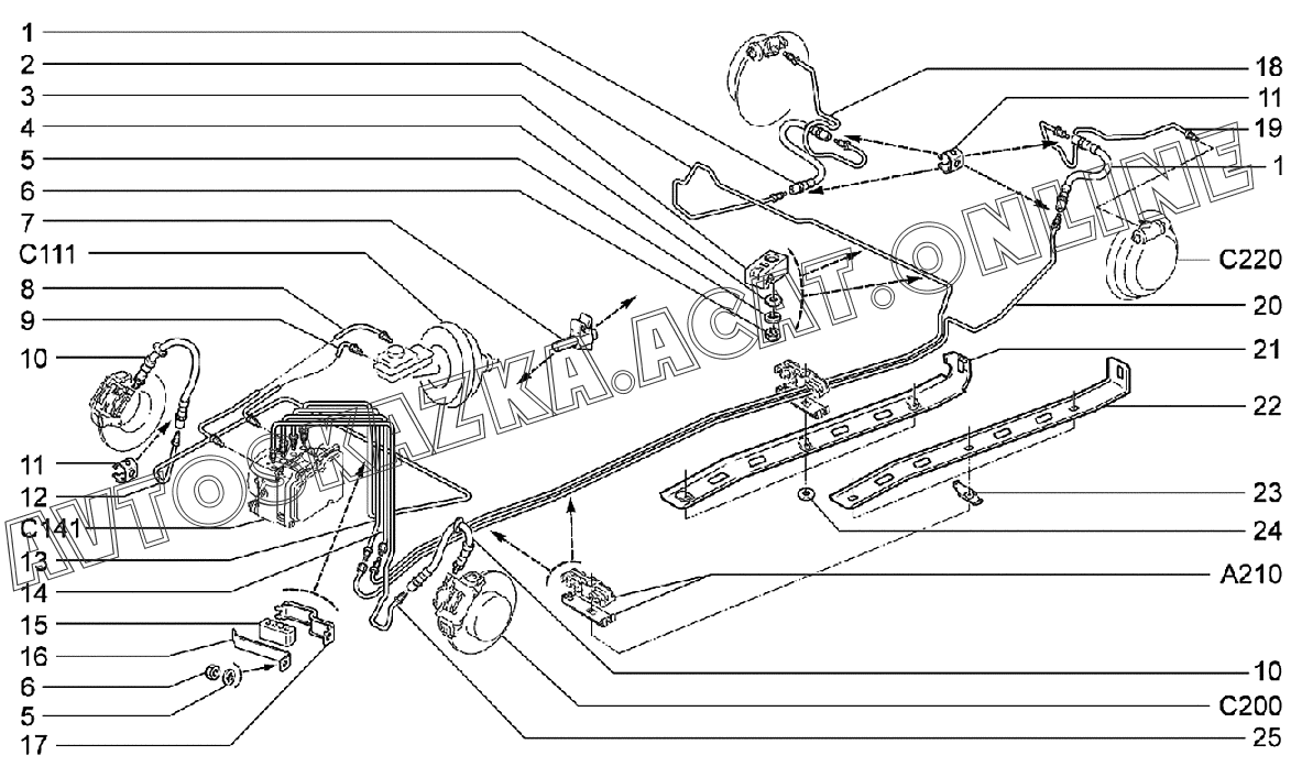 Привод гидротормозов (АБС) ВАЗ 2170 (21702-30, 21703-31, 21703-33, 21705-31, 21705-33, 21705-34 "Priora FL" (седан))