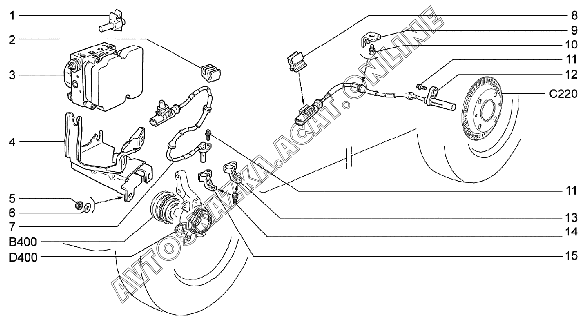 Гидроагрегат и датчики скорости колес (АБС)(ESC) ВАЗ 2170 (21702-30, 21703-31, 21703-33, 21705-31, 21705-33, 21705-34 "Priora FL" (седан))