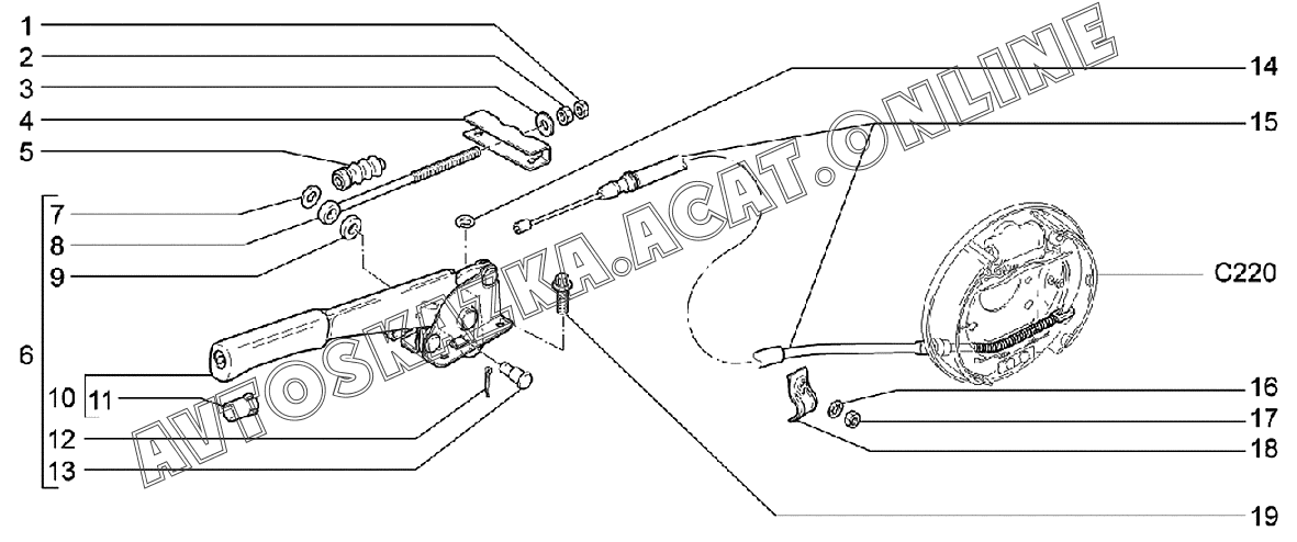 Привод стояночного тормоза ВАЗ 2170 (21702-30, 21703-31, 21703-33, 21705-31, 21705-33, 21705-34 "Priora FL" (седан))