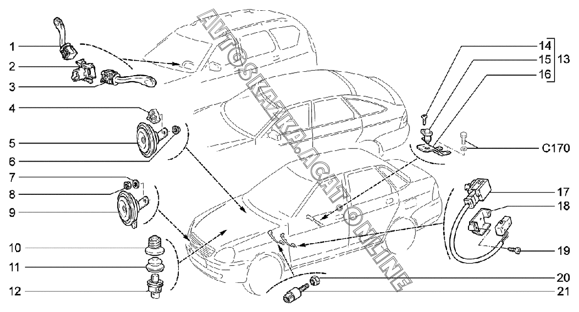 Сигналы ВАЗ 2170 (21702-30, 21703-31, 21703-33, 21705-31, 21705-33, 21705-34 "Priora FL" (седан))