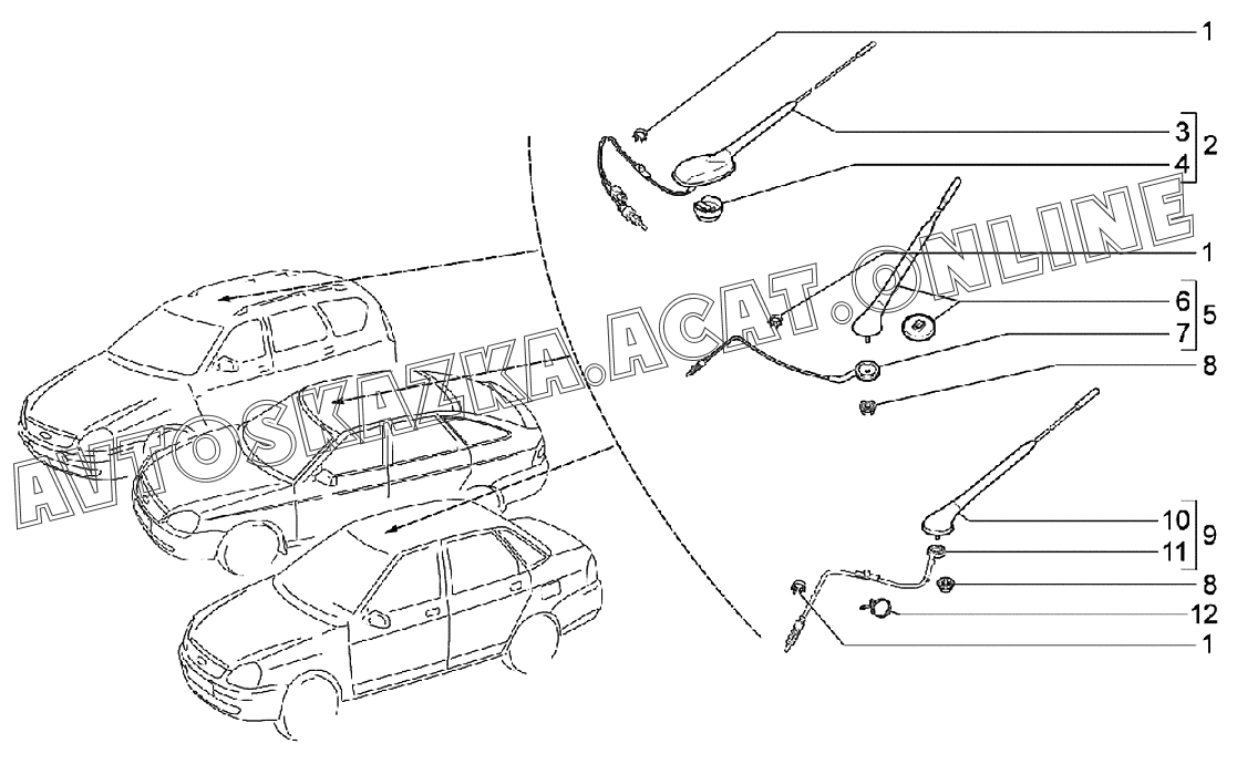 Антенны ВАЗ 2170 (21702-30, 21703-31, 21703-33, 21705-31, 21705-33, 21705-34 "Priora FL" (седан))