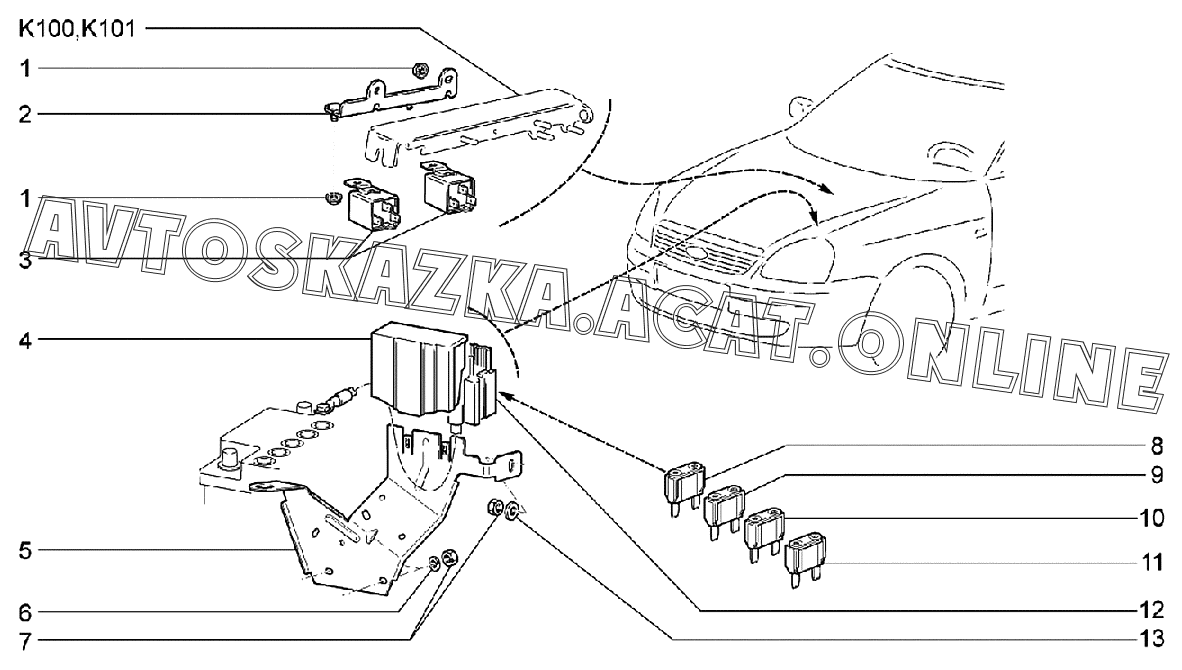 Реле и предохранители ВАЗ 2170 (21702-30, 21703-31, 21703-33, 21705-31, 21705-33, 21705-34 "Priora FL" (седан))