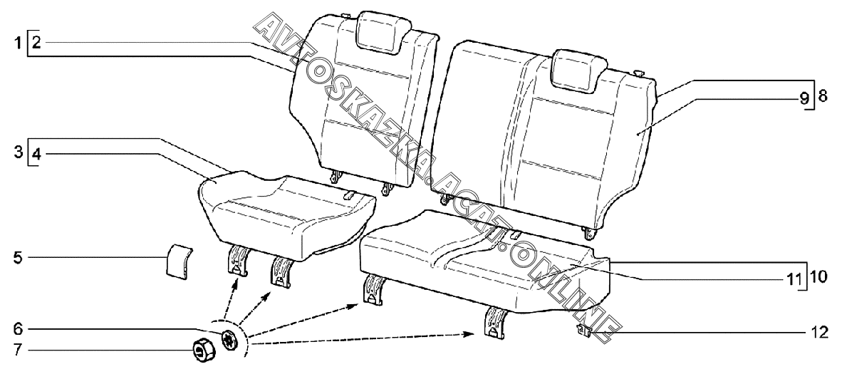 Сиденье заднее ВАЗ 2170 (21702-30, 21703-31, 21703-33, 21705-31, 21705-33, 21705-34 "Priora FL" (седан))