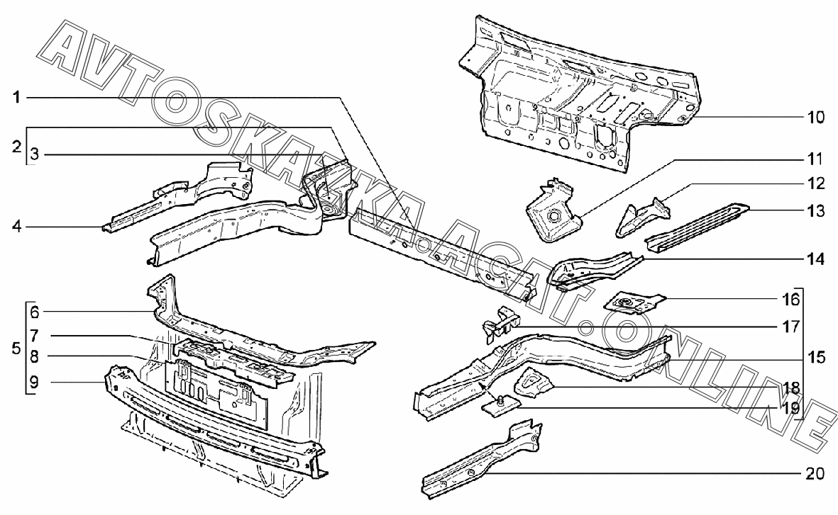 Каркас передка ВАЗ 2170 (21702-30, 21703-31, 21703-33, 21705-31, 21705-33, 21705-34 "Priora FL" (седан))